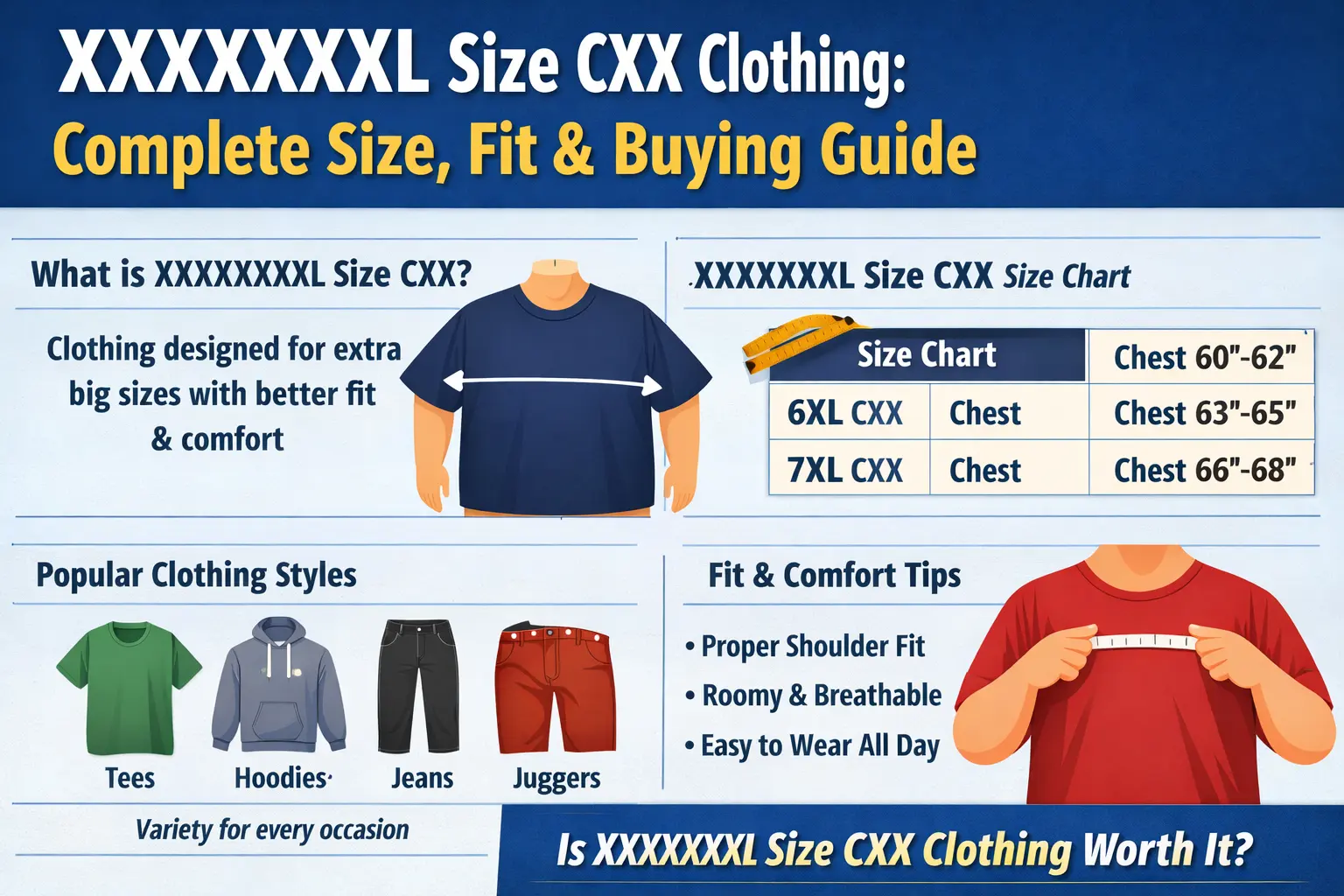 XXXXXXXL size cxx clothing is designed for people who want comfort without compromising fit. It offers better chest space, proper length, and flexible fabric for daily use. From size charts and fabric quality to styling and care tips, this guide covers everything you need to know. If you want clothes that feel good, last longer, and fit your body properly, xxxxxxxxl size cxx clothing is a smart and practical choice.